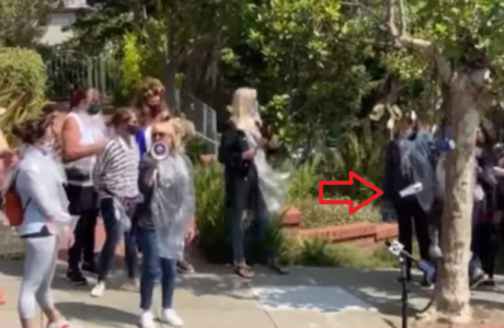 Demonstrators stringing up blow dryers and curlers outside Nancy Pelosi’s San Francisco home 2020-09-03