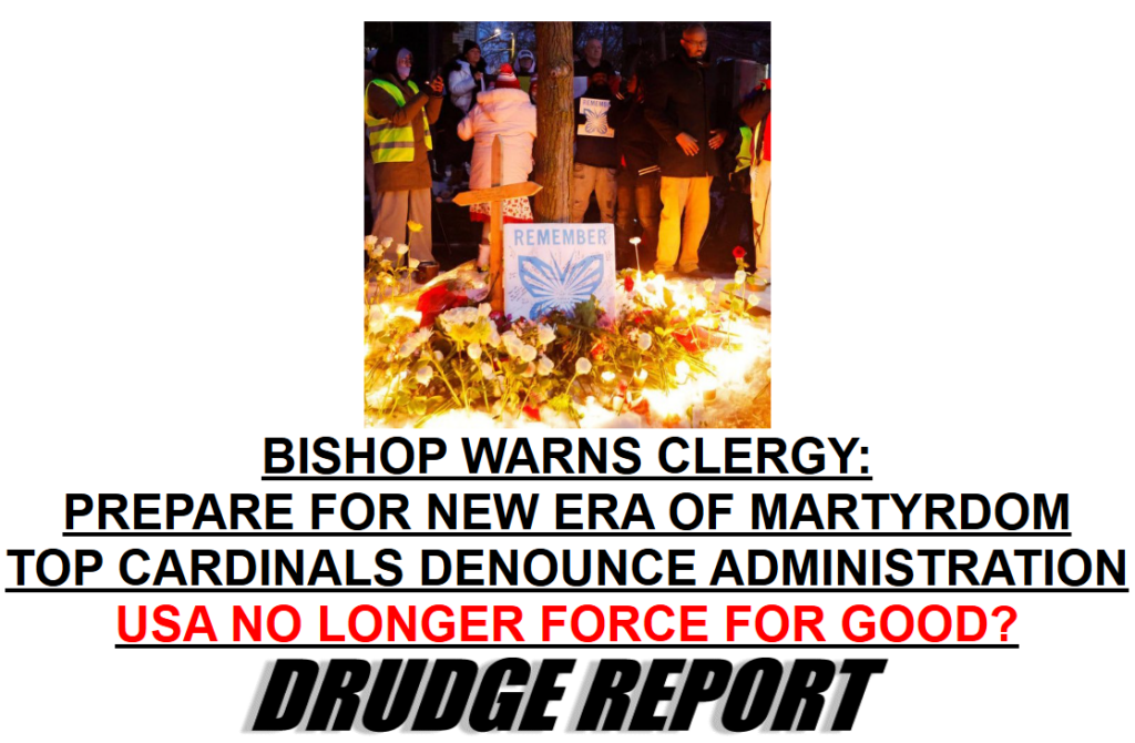 Another Dumb Drudge Headline: Episcopal Bishop Says Get Ready for Martyrdom? My Cat’s More of a Bishop Than this Liberal Lunatic. Top Catholic Clerics Denounce Trump’s Policy? Because They’re a Bunch of Morally Confused Liberals That Have Substituted a Horizontal Worship of the “City of Man” for the Vertical, Supernatural “City of God.” Where Were You When the FBI was Targeting Legit Catholics? Render Unto Caesar What is Caesar’s! Fostering the Illegal Alien Invasion of Western Civilization is Not a Christian Virtue…Nor Charitable. Helping Them to Help Their Own Countries is the Answer: and Much of That Revolves around Ending Corruption in Their Native Homelands…