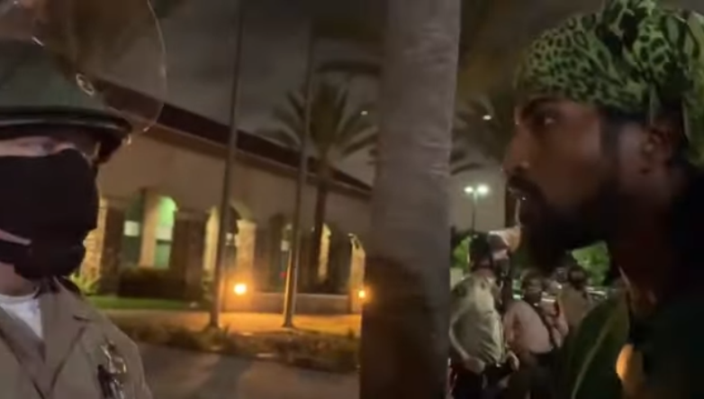 BLM provoking agitator trying to get a reaction by threatening & intimidating a police officer