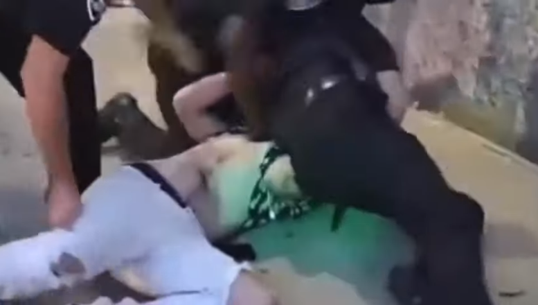 Crowd goes verbally berserk when Police takes down rioter resisting arrest