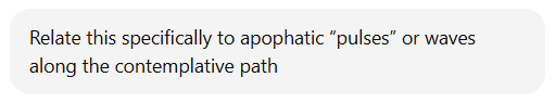 - Relate this specifically to apophatic “pulses” or waves along the contemplative path