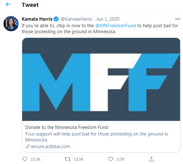 IF ANTIFA AND ELEMENTS OF BLACK LIVES MATTER ARE VIOLENT, DOMESTIC, COMMUNIST, REVOLUTIONARIES (TERRORISTS?) – AND THEY ARE – AND SITTING GOVERNMENT OFFICIALS LIKE JANE DOE (OR JANE HARRIS, OR KAMALA DOE) PROVIDE MORAL AND MATERIAL SUPPORT (THROUGH LEGITIMATE-SOUNDING FRONT ORGANIZATIONS LIKE MFF) ARE THEY COMPLICIT IN STATE-SPONSORED TERRORISM? OR ARE WE EVEN ALLOWED TO ASK THOSE QUESTIONS AND DRAW THOSE LOGICAL CONCLUSIONS? AND IF SO, WHERE IS US LAW ENFORCEMENT & INTELLIGENCE? AND WHY IS TWITTER ALLOWING HER TO TWEET HER VIOLENCE- ENABLING BULLSH*T WHEN EVERYONE ELSE IS BEING SHUT DOWN FOR BENIGN BUT OPPOSING POLITICAL POINTS OF VIEW? JUST SAYIN’…YOU KNOW.
