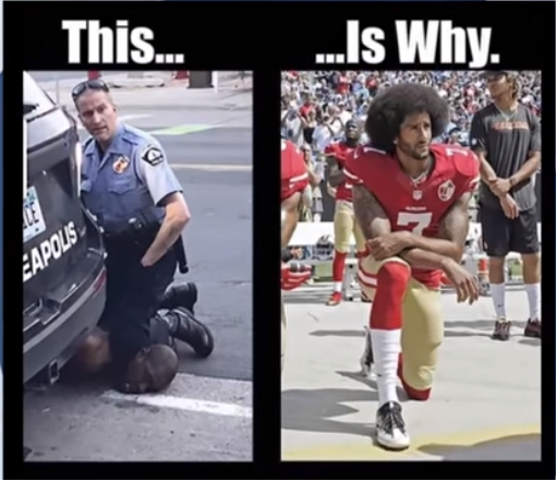 Now THIS picture is very interesting. I was critical of the Colin Kaepernick taking a knee fad, and still am. However, I must say that there’s is something very powerful, even synchronistic, in the juxtaposed kneeling images– but not in the way you may think. Both contain elements of truth, false justification, subjective interpretation and action. Which begs the question how close can any of us get to the truth in any situation? (Do the analysis: both men are virtue signalling)