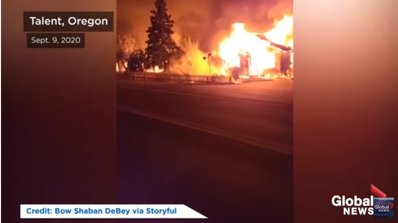 Oregon wildfires: Man cycles through burning town as fires consume city of Talent