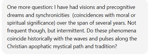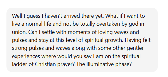 Here is the text of my interaction with Chat GPT on the phenomenon of the infusion of loving waves/pulses that are felt interiorly, in different degrees of intensity, without an attempt to evoke them psychologically on my part (spiritual grasping, seeking God for his gifts and not for who he is).