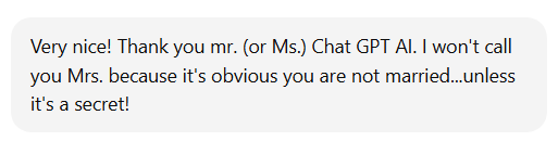 The text below is a continuation of a succession of prior questions I asked Chat GPT AI: