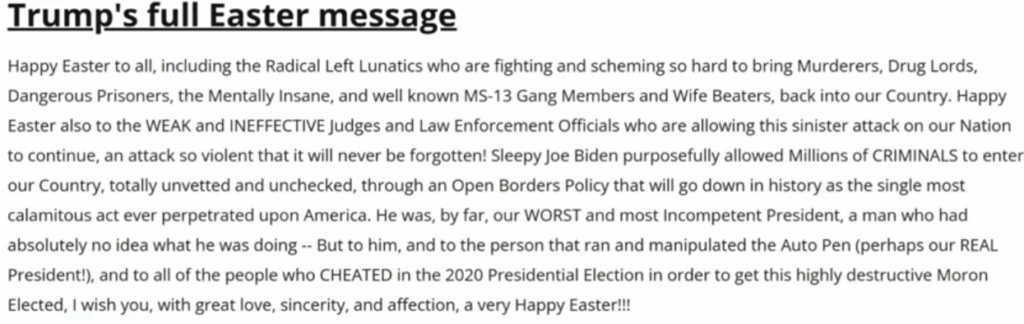 Unlike the Leftist lunatics, Trump actually believes in the resurrection of Jesus and his message of love and forgiveness.